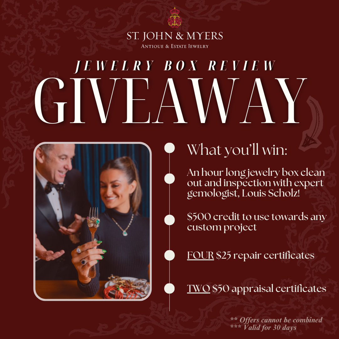 St. John & Myers is Central Kentucky's only expert in antique and period jewelry, custom design, and restoration of antique jewelry. When it comes to acquiring jewelry, you want to purchase from people of integrity, who are passionate and knowledgeable. When you shop with St. John and Myers Jewelry that is exactly what you will find. If you are ever in Lexington Kentucky, please come in and visit the store!