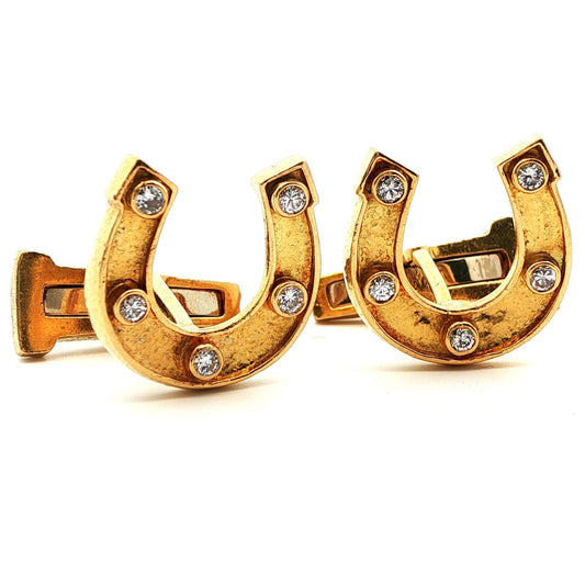 Signed David Webb 1960s 18k Yellow Gold & Diamond Horseshoe Cufflinks