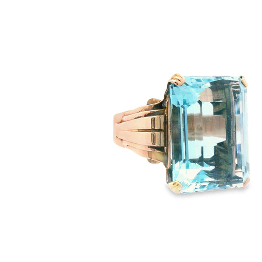 28+ Carat Natural Aquamarine and 18k Rose Gold Art Deco Ring