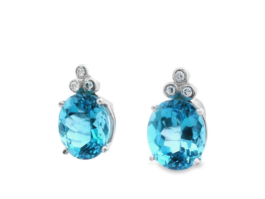 Contemporary 14K White Gold Blue Topaz & Diamond Earrings