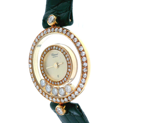 Chopard Happy Diamonds 18K Yellow Gold Leather Strap Watch