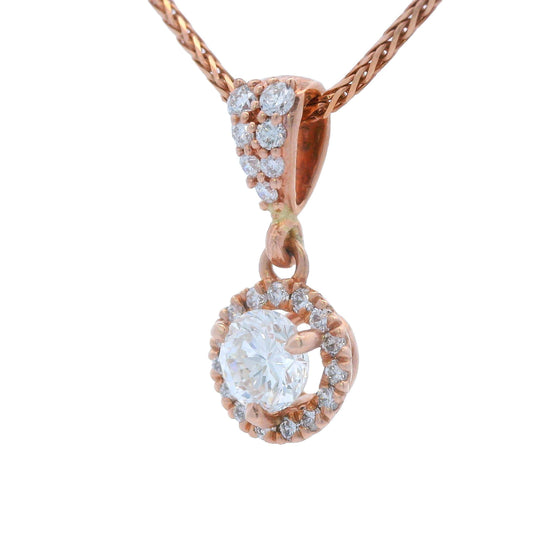 Contemporary 14k Rose Gold Diamond Drop Pendant w/ 18" Wheat Chain