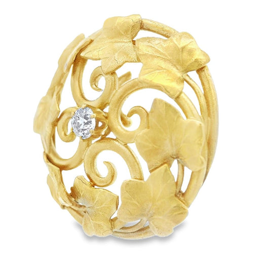Art Nouveau 18k Yellow Gold and Old Mine Cut Diamond Watch Holder/Pendant