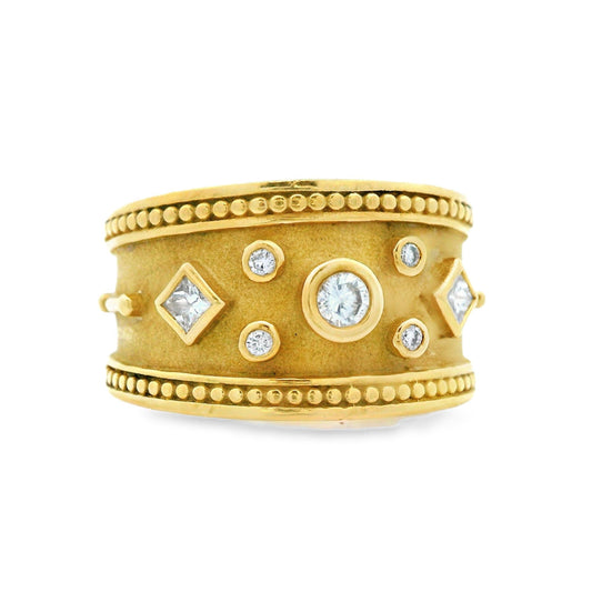 Contemporary 18k Yellow Cigar Band Wide Cut Diamond Ring