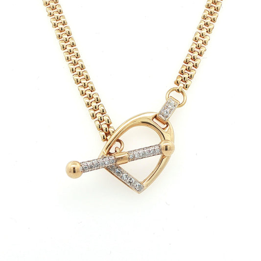 14k Yellow Gold & Diamond Stirrup Toggle Necklace