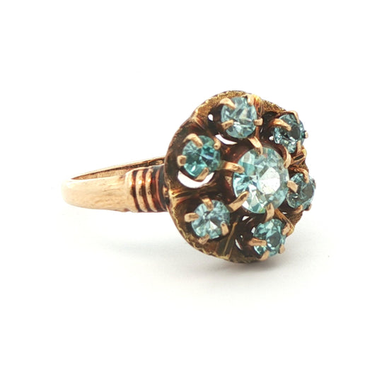 10k Yellow Gold Blue Zircon Cluster Ring 1890 Victorian